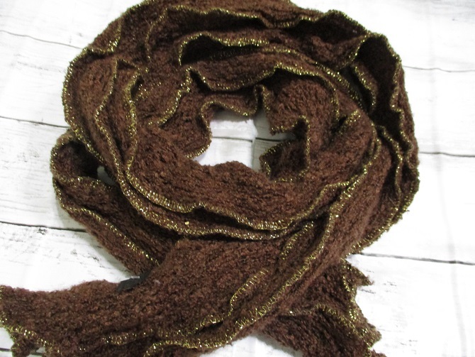 - 男女兼用 わっか ストール 長いマフラー ブラウン ラメ 未使用