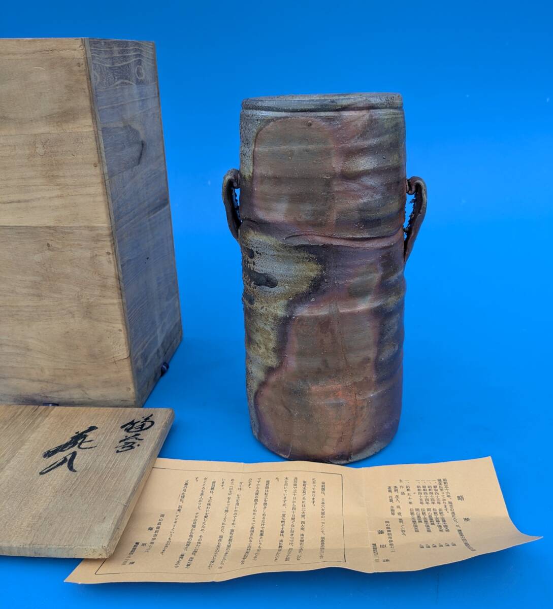 - 備前焼 藤原謙 花入 花瓶 共箱 藤原楽山高さ約25cm送料詳細は商品説明に記載されています