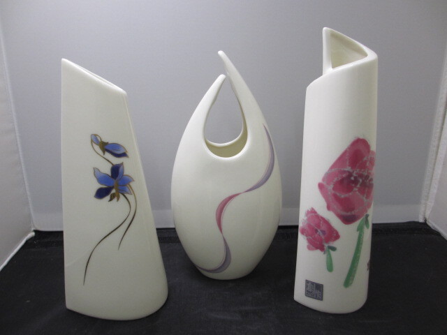 - インテリア 3種類 白磁 柄入り 変形 花器 3本