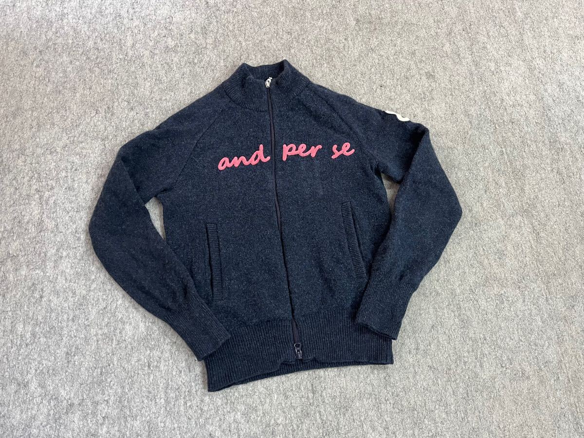 - アンパスィ ハイネック フルジップ ポコポコ セーター ネイビー × ピンクロゴ サイズ M 美品です