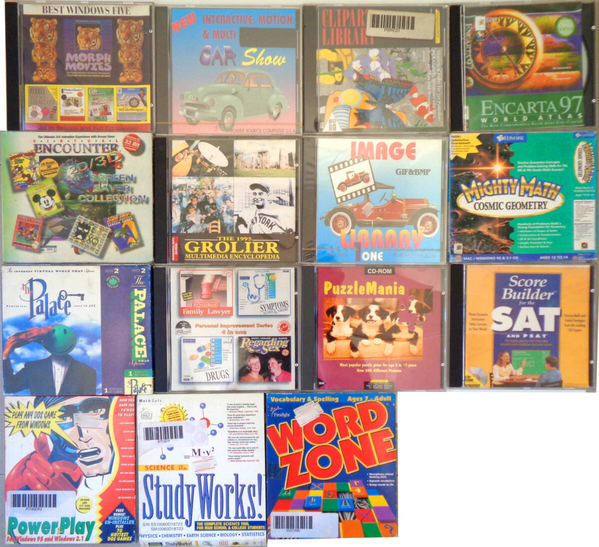11. Puzzle Mania for age 3 to 70, over 300 different pictures12. Score Builder for the SAT and PSAT13. Power Play for Windows 95 and Windows 3.1, Play DOS Game from Windows14. Study Works!, Science tool for high school and collage students, Physics, chemistry, earth science, biology, statistics15. Word Zone Vocablary & Spelling Ages 7 - Adult, for Windows 3.1 or Windows 95***********************************************************************************************************************************