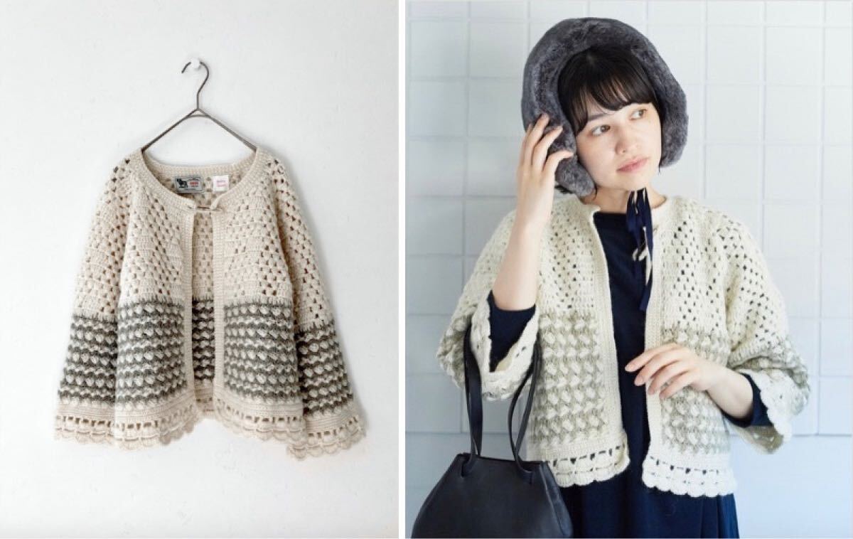 > とても美品 bulle de savon ビュルデサボン ウール 100% ハンドニット かぎ針編み ボレロ カーディガン