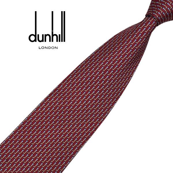 > ★美品★ブーツ柄★dunhill★高級ネクタイ レッド系 イタリア シルク ネコポス可 ダンヒル USED プレス済み t1143
