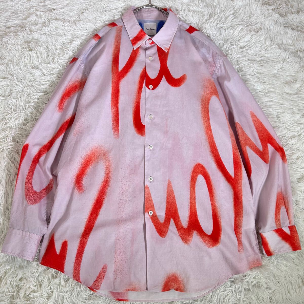 - 【希少!XLサイズ】Paul Smith ポールスミス 現行タグ 長袖シャツ スプレーロゴ プリント オレンジ オーバーサイズ ビッグシルエット