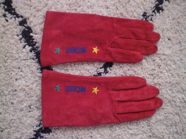- 即買☆ミチコロンドン MICHIKO LONDON 赤スエード手袋 Sサイズ 星ロゴ刺繍