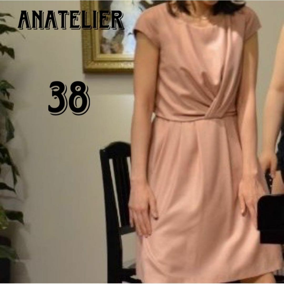 - ワンピース パーティードレス フレアドレス ピンク×ラメ入り お呼ばれドレス Mサイズ ギャザー 半袖ワンピース