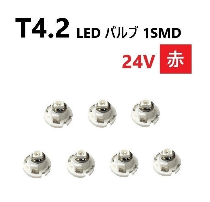 > T4.2 LED バルブ 24V 赤 7個 レッド SMD ウェッジ メーター エアコン パネル 灰皿 バス トラック 大型 車 専用 インテリア 定型外 送込
