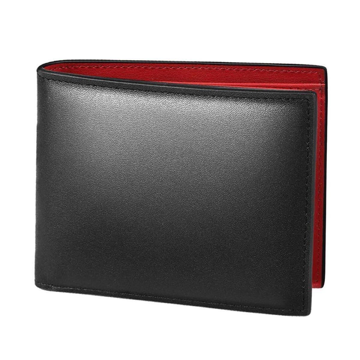 - 本革 二つ折り財布 メンズ ブラック 黒赤 高級 プレゼント メンズ財布