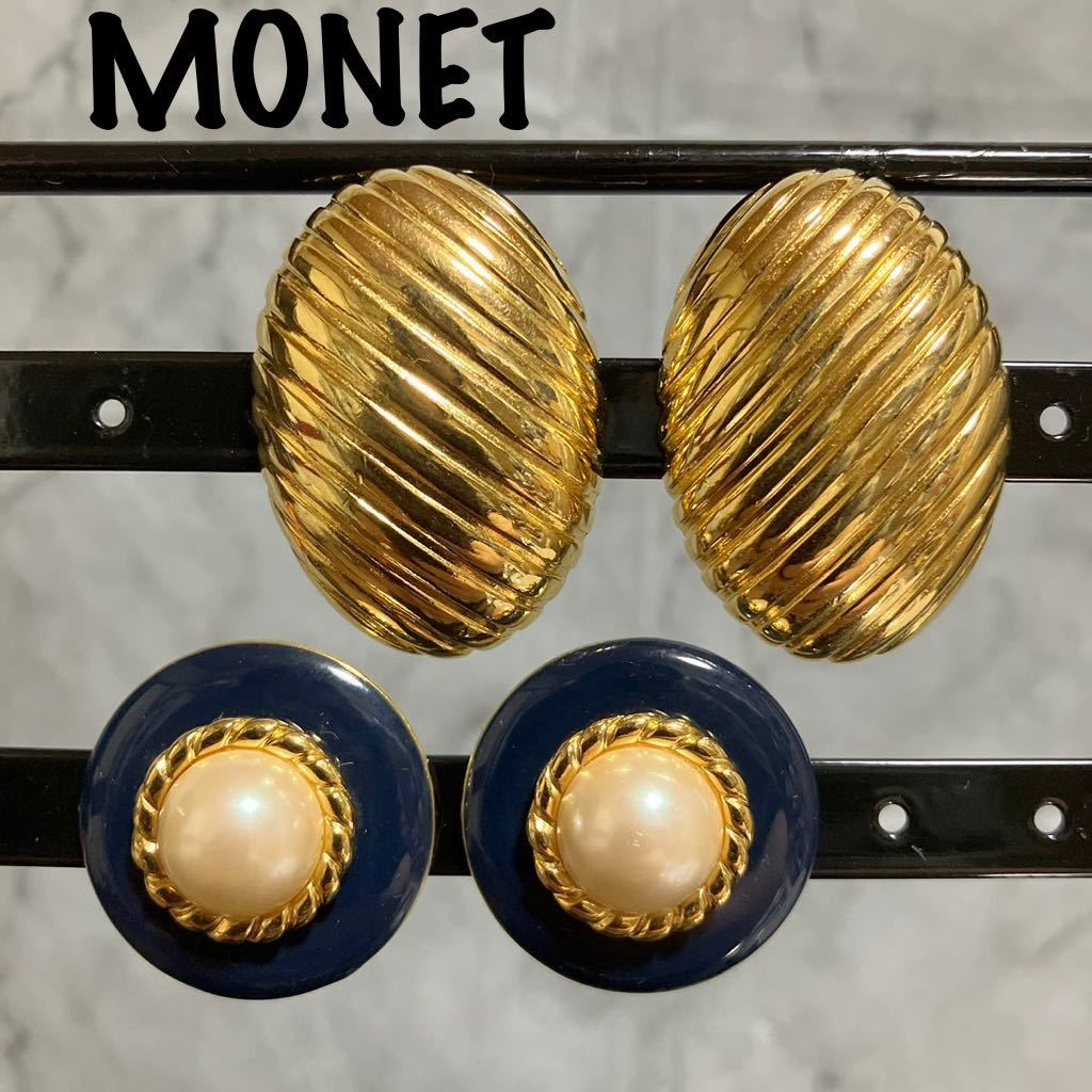 - 【ws833】モネ MONET イヤリング ヴィンテージ 2点セット ゴールドカラー フェイクパール オーバル
