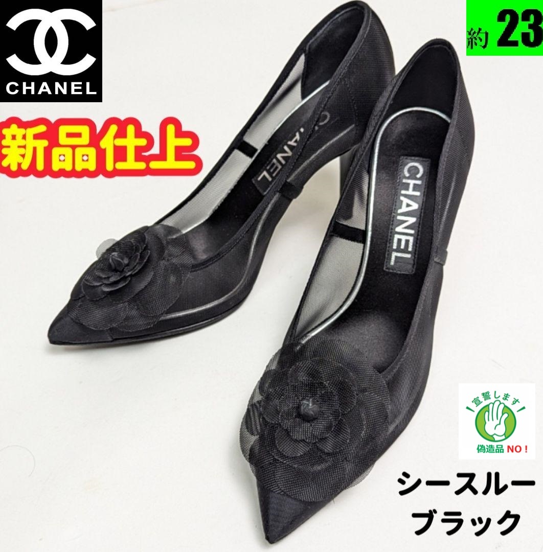 - 新品そっくりさん CHANELシャネル カメリア シースルーパンプス 35.5C