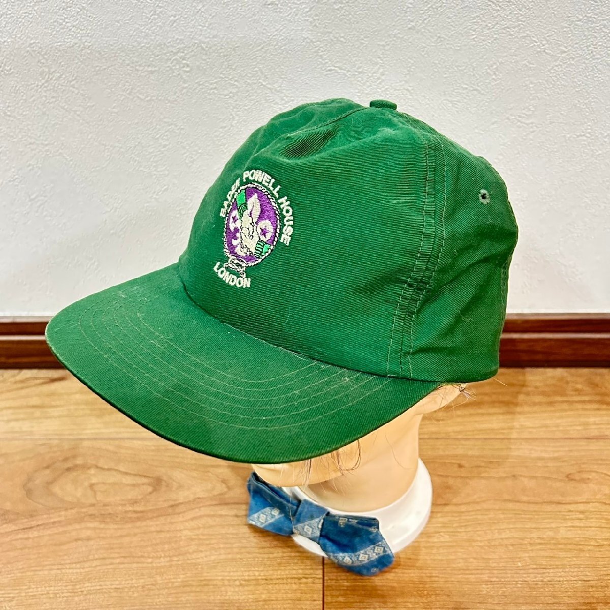 - (^w^)b 80s 90s ヴィンテージ キャップ 帽子 BADEN POWELL HOUSE LONDON ボーイスカウト 刺繍 グリーン 緑 メンズ ユニセックス/YC1370YY