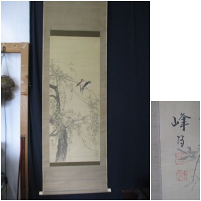 - ★掛軸 鳥*木 縦177cm 横52.5cm ※状態悪い tm2412-15-4★