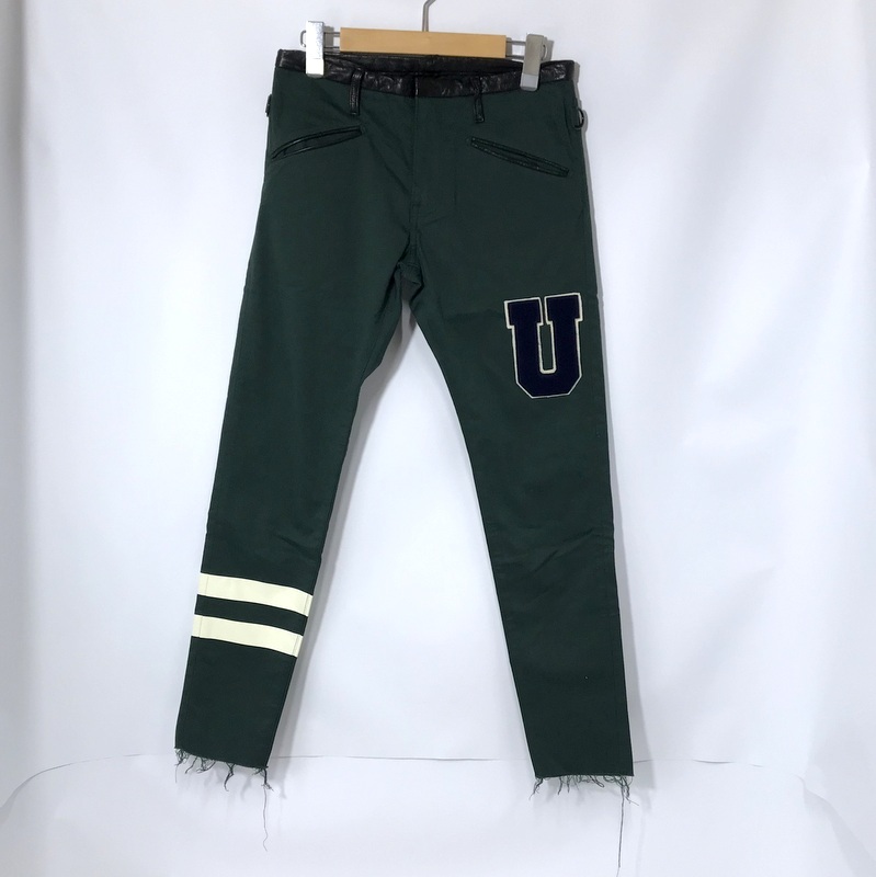 > UNDERCOVER チノストレッチパンツ 美品 UCU4502 ワッペン レザー切替 スキニーパンツ サイズ1 S相当 アンダーカバー ボトムス A12482◆