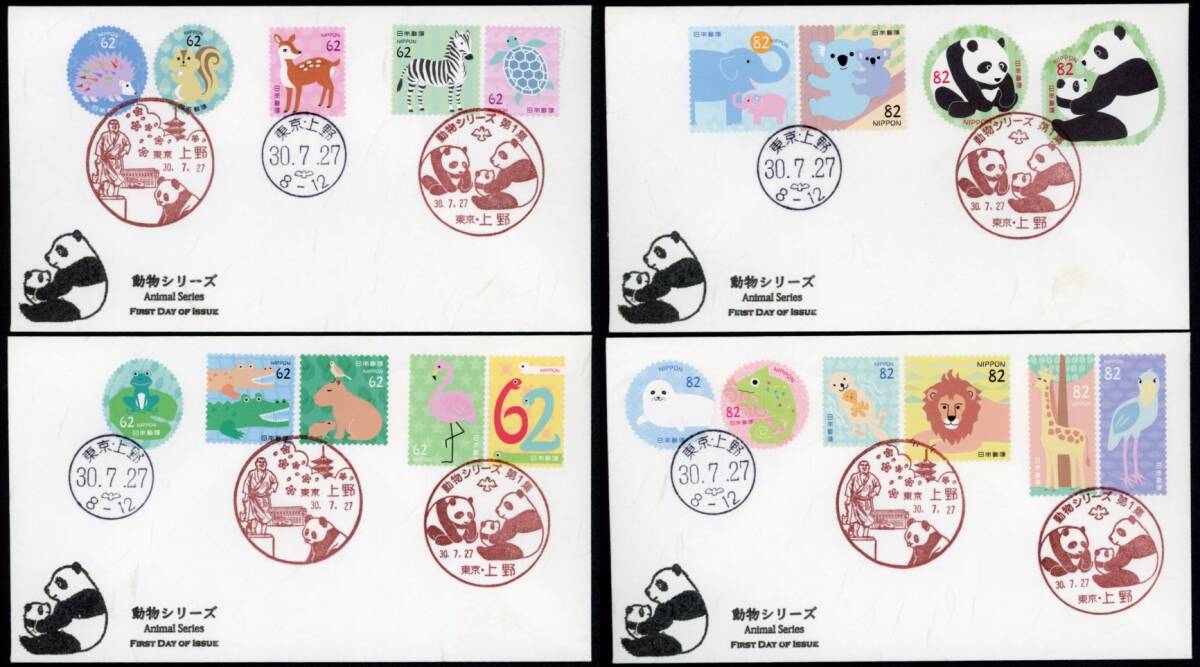 - 1086 【FDC】動物シリーズ第1集[東京・上野/30.7.27/鳴美版](解説書なし)