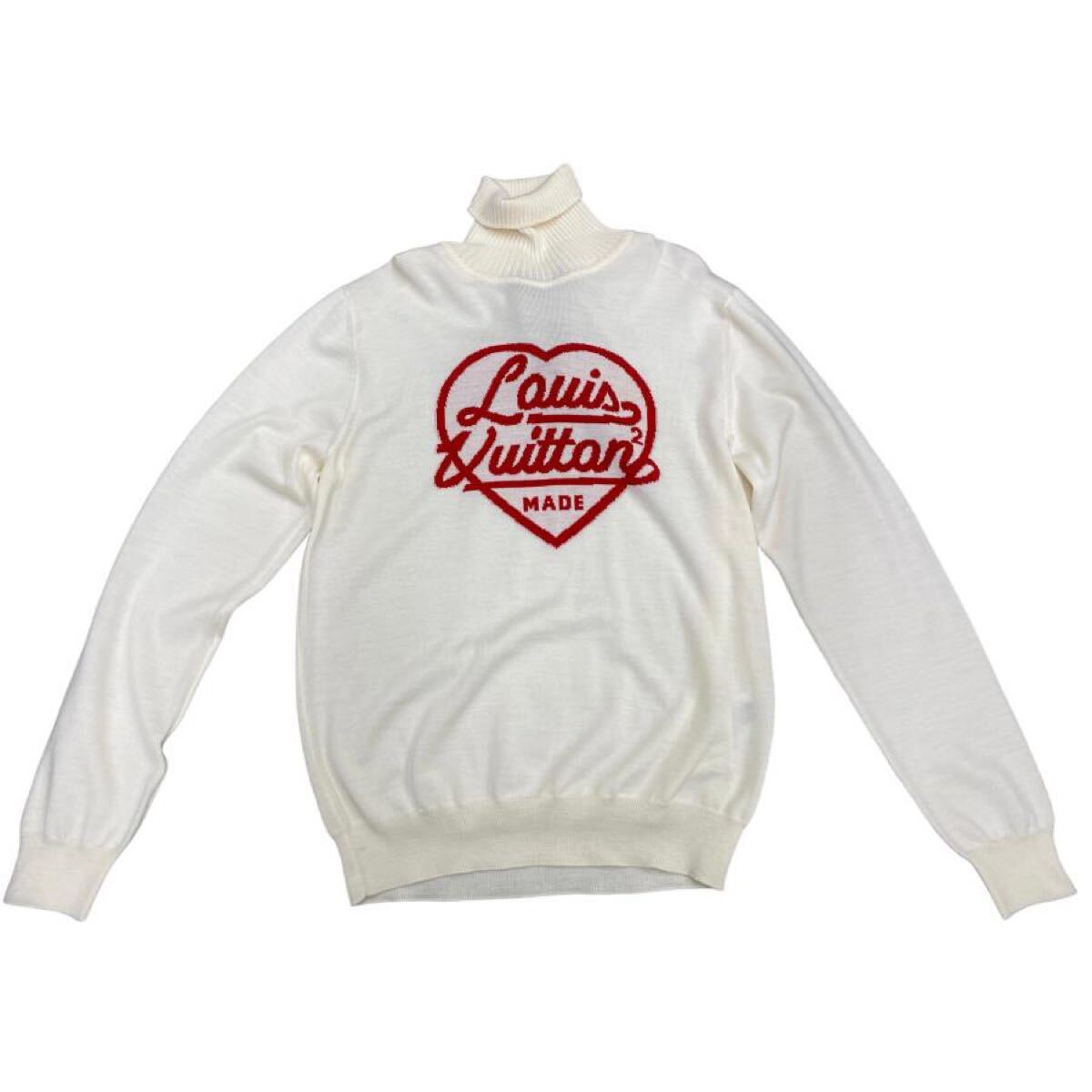 > 美品 ルイヴィトン ホワイト NIGO Sサイズ LOUIS VUITTON ニット タートルネック 長袖 ホワイト系 LV 正規品 セーター ハイネック