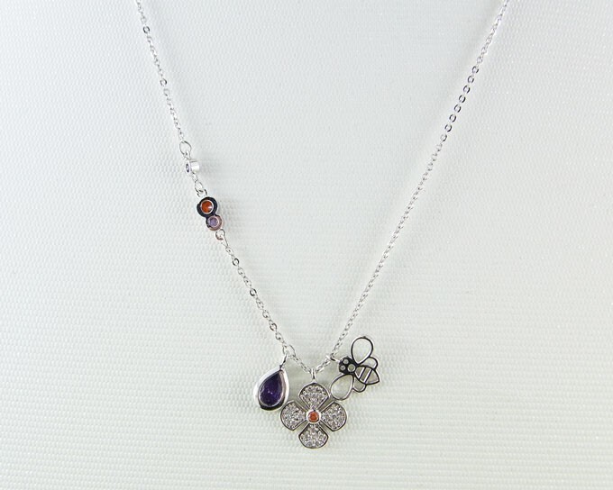 - ネックレス レディ-ス 蜂 花 ラインストーン シルバー ギフト mimosa