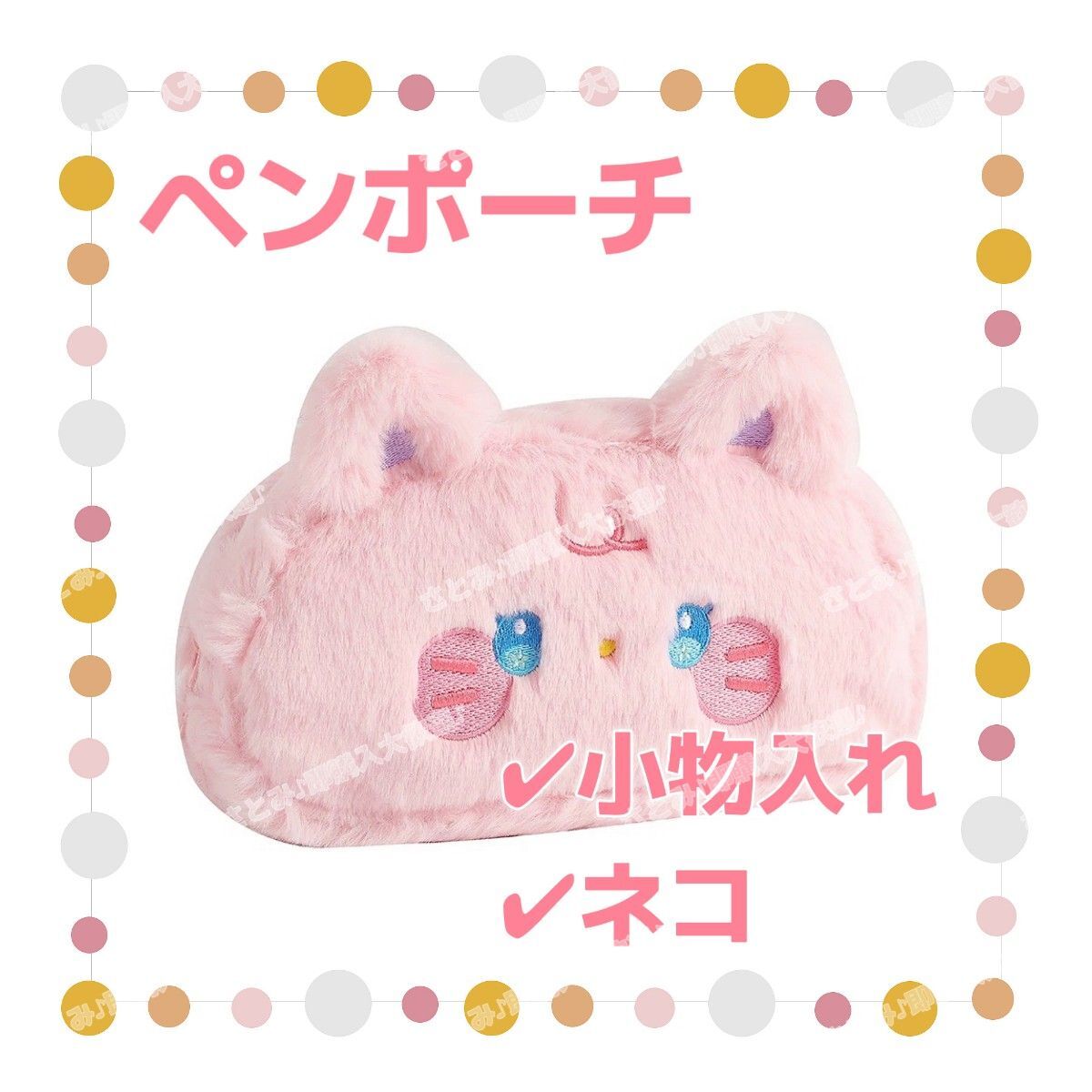 - アニマル ペンポーチ メイクポーチ 小物入れ 大容量 ふわふわ 可愛い ネコ ピンク