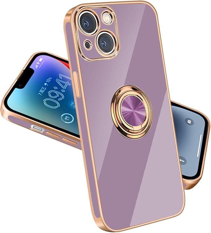 - IPhone14Plus ケース リング付き カバー 耐衝撃 スタンド機能 TPU 薄型 携帯カバー 360回転 車載ホルダー 黄ばみにくい指紋防止 (パープル)