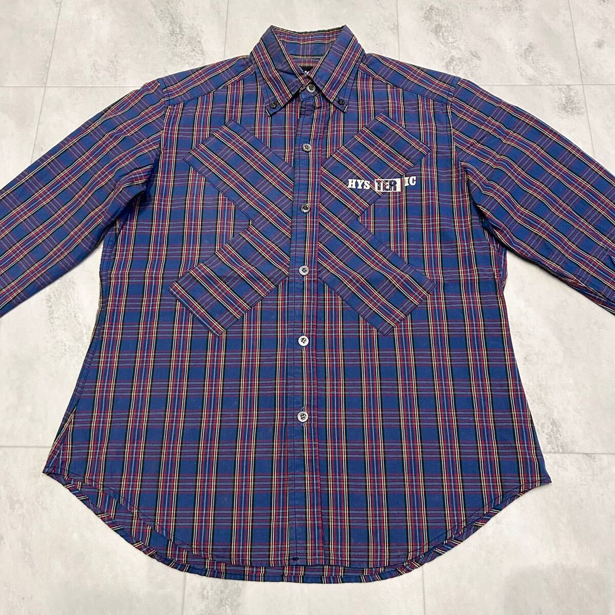 - HYSTERIC GLAMOUR ヒステリックグラマー ロゴ チェック 再構築 ドッキング ボタンダウン 長袖シャツ 綿100% オゾンコミュニティ