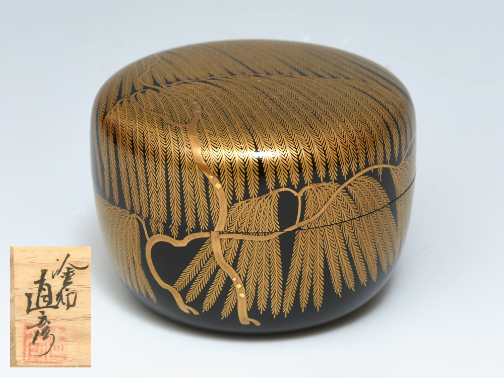 - 豪華柳蒔絵平棗 塗師 倉山直彦(造)共箱 茶道具 漆工芸 漆芸 木工芸 未使用 美品 z9095o