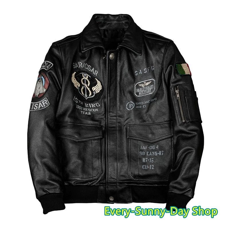 - 人気品 フライトジャケット レザージャケット 牛革 ライダースジャケット 革ジャン カウハイド メンズファッション刺繍バイクレザー S~5XL