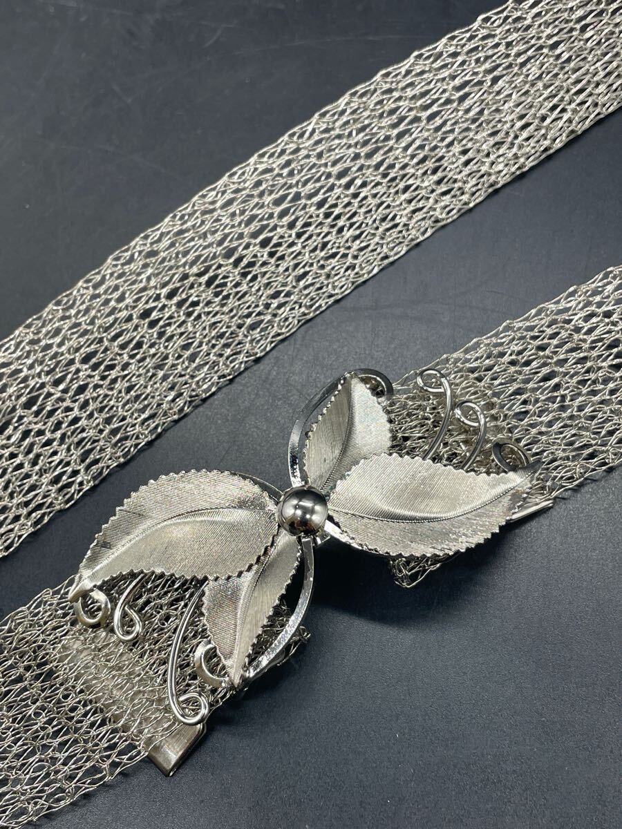 - メッシュベルト シルバーカラー 全長74cm 長さ調節可能 ヴィンテージ 昭和レトロ レディース ベルト 20795A