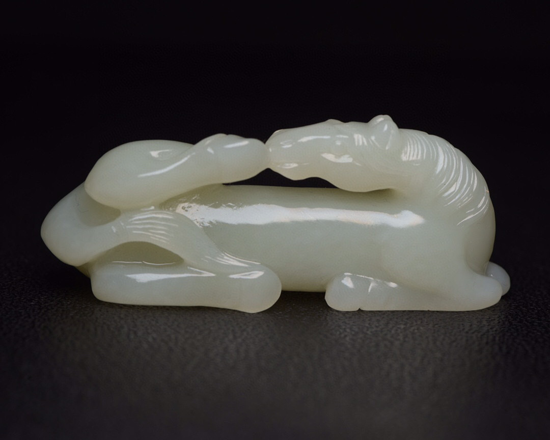 - 【超珍館蔵】和田玉製 細密彫 馬上翻身 置物 古賞物 古美術品 稀少珍蔵品
