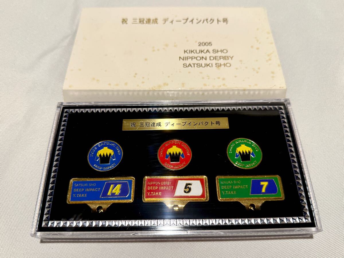 - 【未使用】祝 三冠達成 ディープインパクト号 菊花賞 日本ダービー 皐月賞 記念バッヂ 銀座天賞堂