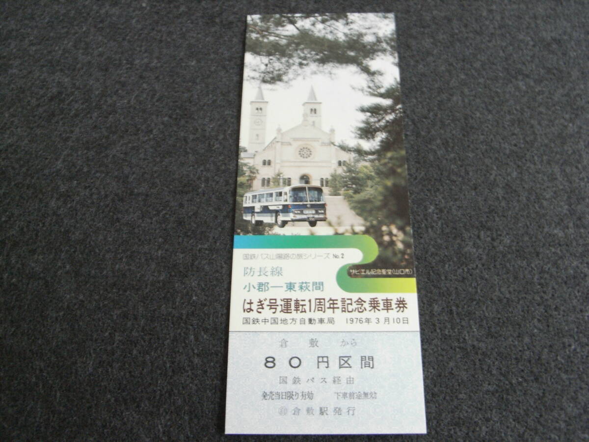 - 国鉄バス 山陽路の旅シリーズNo.2 防長線 小郡-東萩間 はぎ号運転1周年記念乗車券 国鉄中国地方自動車局 1976年
