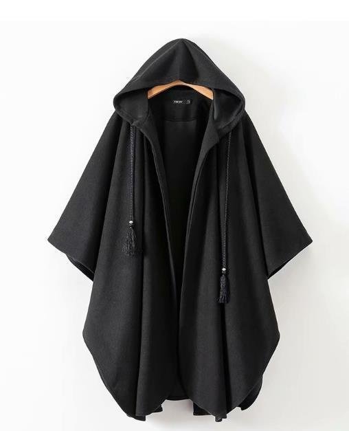 - LHK581★コート レディース ケープ マントコート あったか ポンチョ風 ジャケット 大きいサイズ着痩せ ファッション ブラック 無地