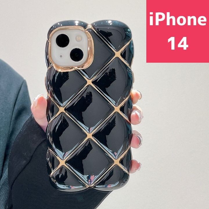 - iPhone14 スマホケース かわいい メッキ うねうね 韓国 ブラック 人気