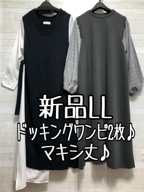 - 新品☆LL重ね着風マキシ丈デザインワンピース2枚セット〇B763