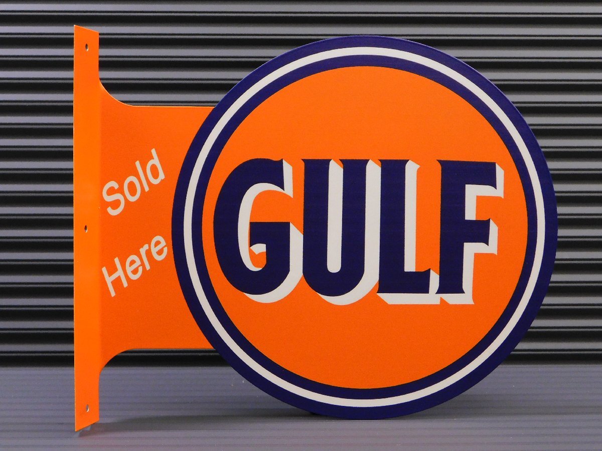 - 【GULF・ガルフ】※《フランジメタルサイン・両面プリント》 アメリカン雑貨 ブリキ看板 ガレージ