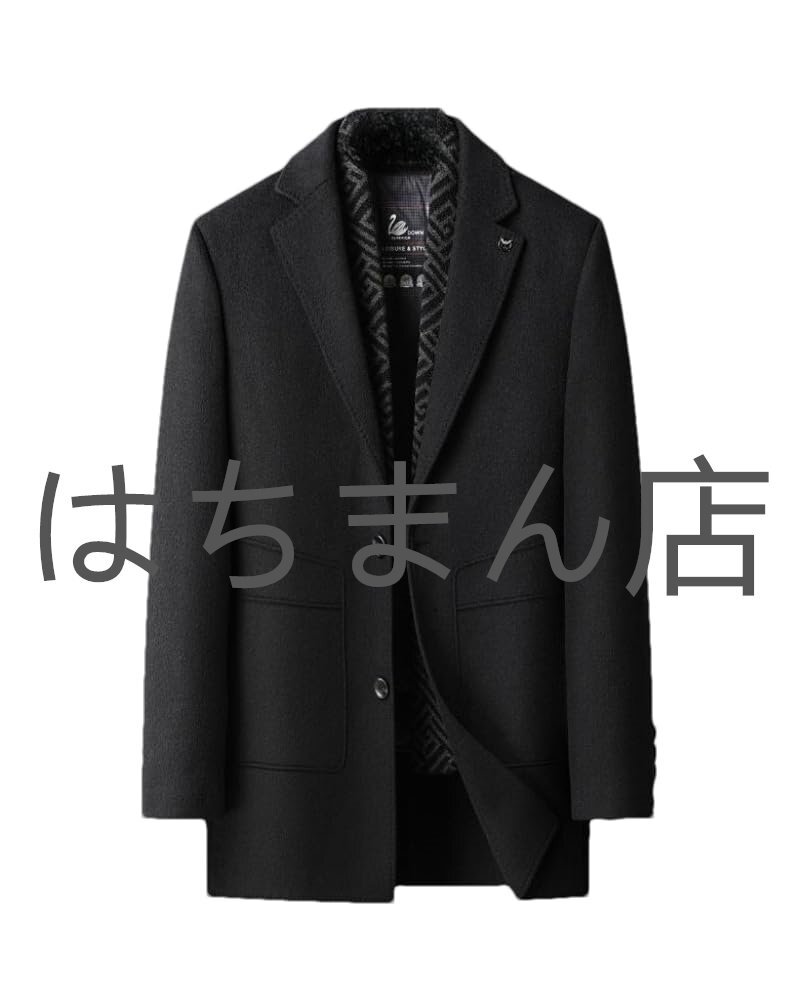 - チェスターコート 秋冬 ウール混紡 ビジネス メンズ メルトンコート ハーフ丈 保温性 防風防寒 紳士 暖かい冬服 防寒着 ブラック M-4XL