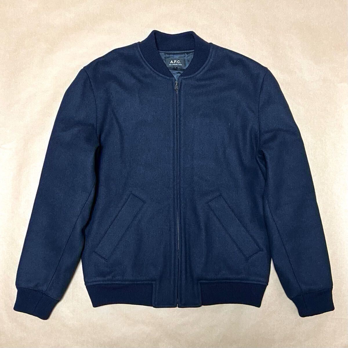 - 極美品 A.P.C. Gaston Blouson MA-1 ジャケット ダークネイビー S メルトン 圧縮ウール ボンバー ボマー ブルゾン APC アーペーセー @b165