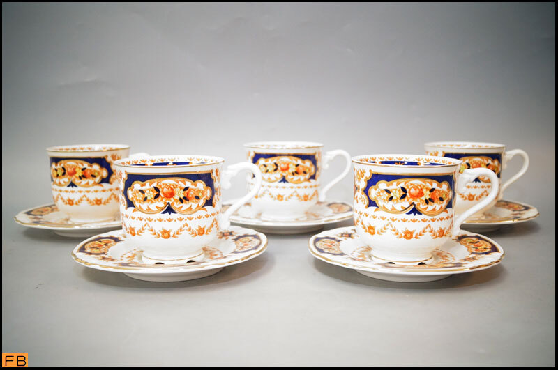 > 1683-ニッコー◆ダブルフェニックス カップ&ソーサー 5客 金彩 C&S レトロ 日本製 DOUBLE PHOENIX NIKKO