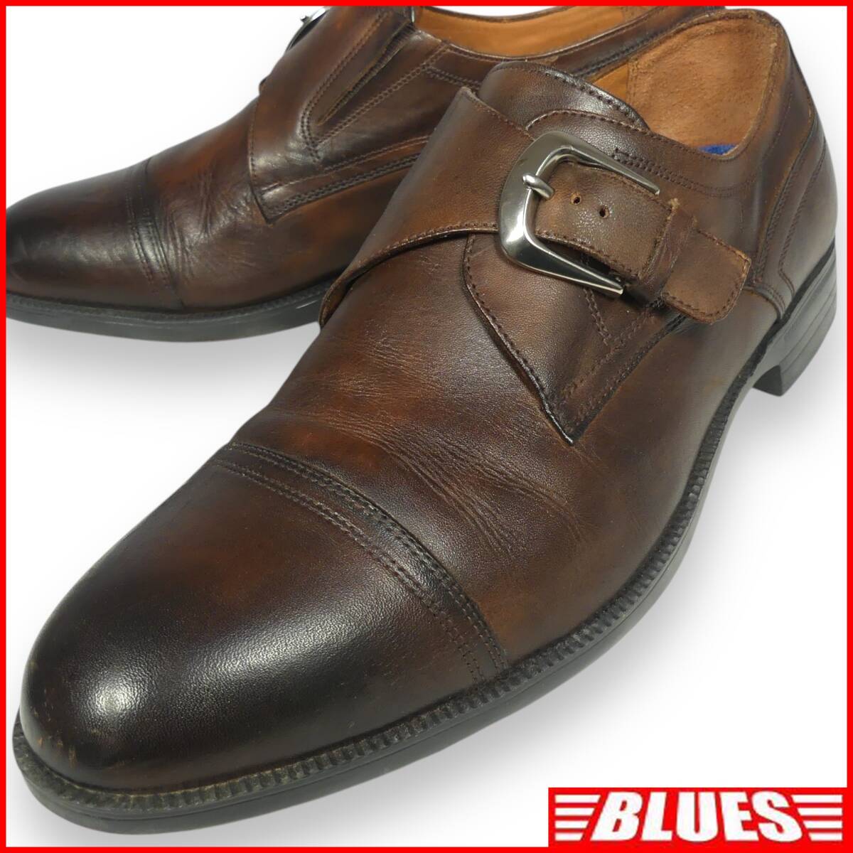 - 即決★HAWKINS★26.5cm レザービジネスシューズ モンクストラップ ホーキンス メンズ 8.5 茶 本革 皮 ヒール 革靴 ストレートチップ