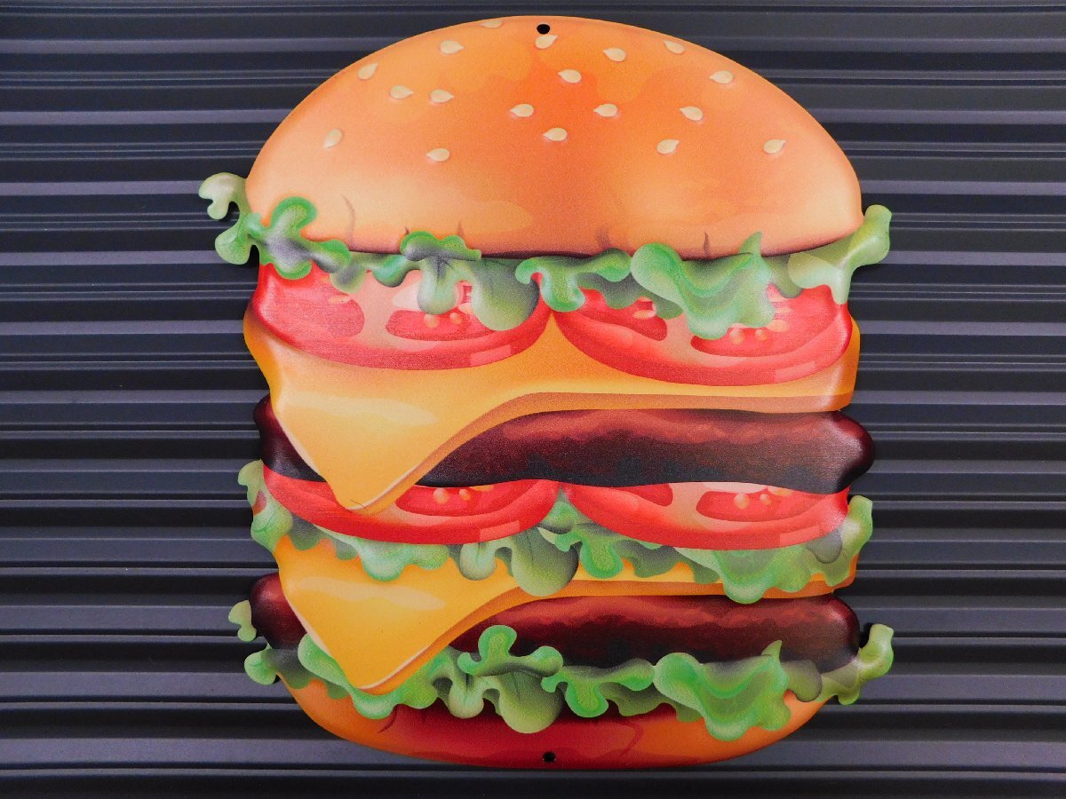 - ◆送料\185◆【ダブルチーズバーガー・ハンバーガー】※《エンボスメタルサイン》 アメリカン雑貨 エンボス看板 ブリキ看板 28