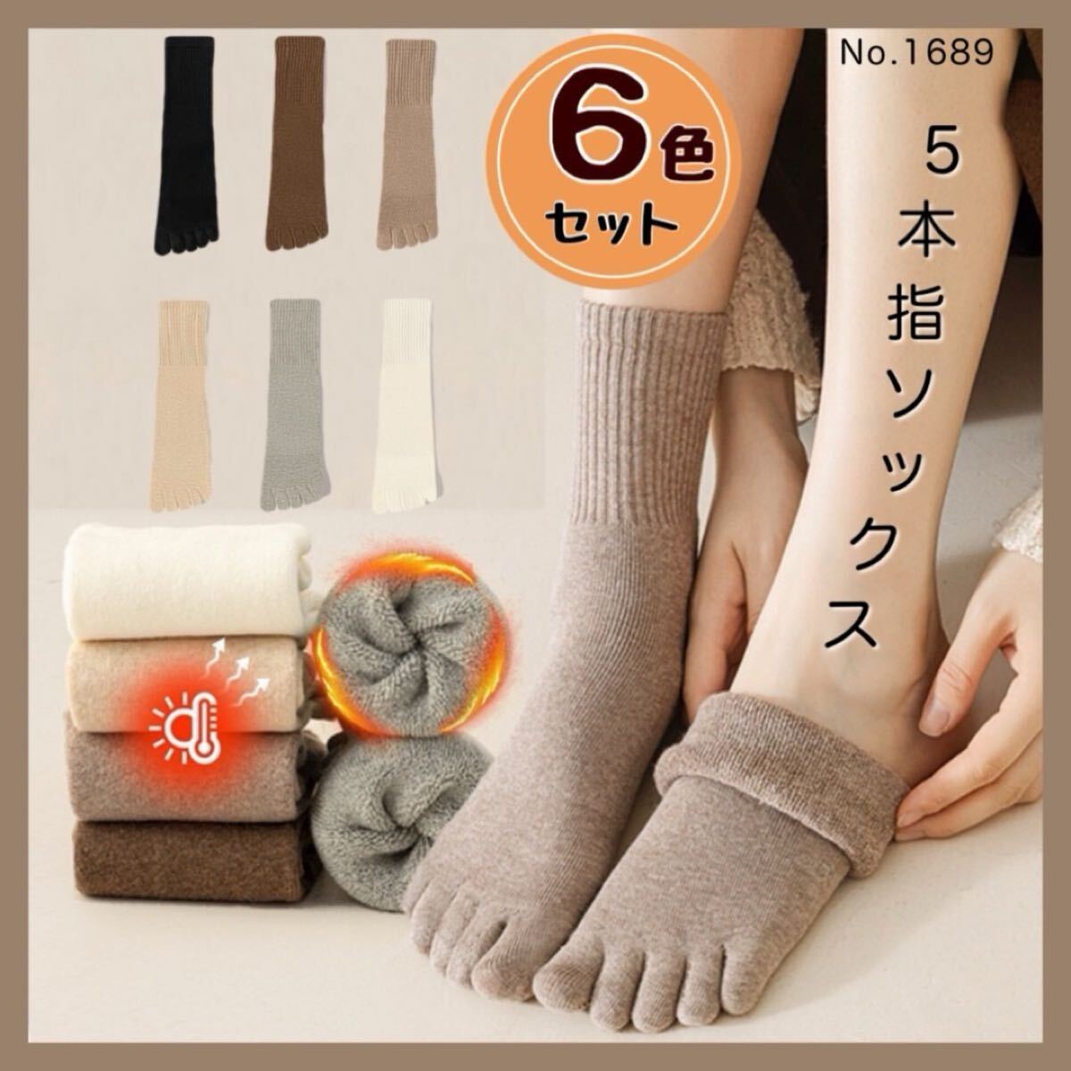 - 5本指ソックス 6色セット レディース 靴下 保温 ソックス 冷え対策 秋冬