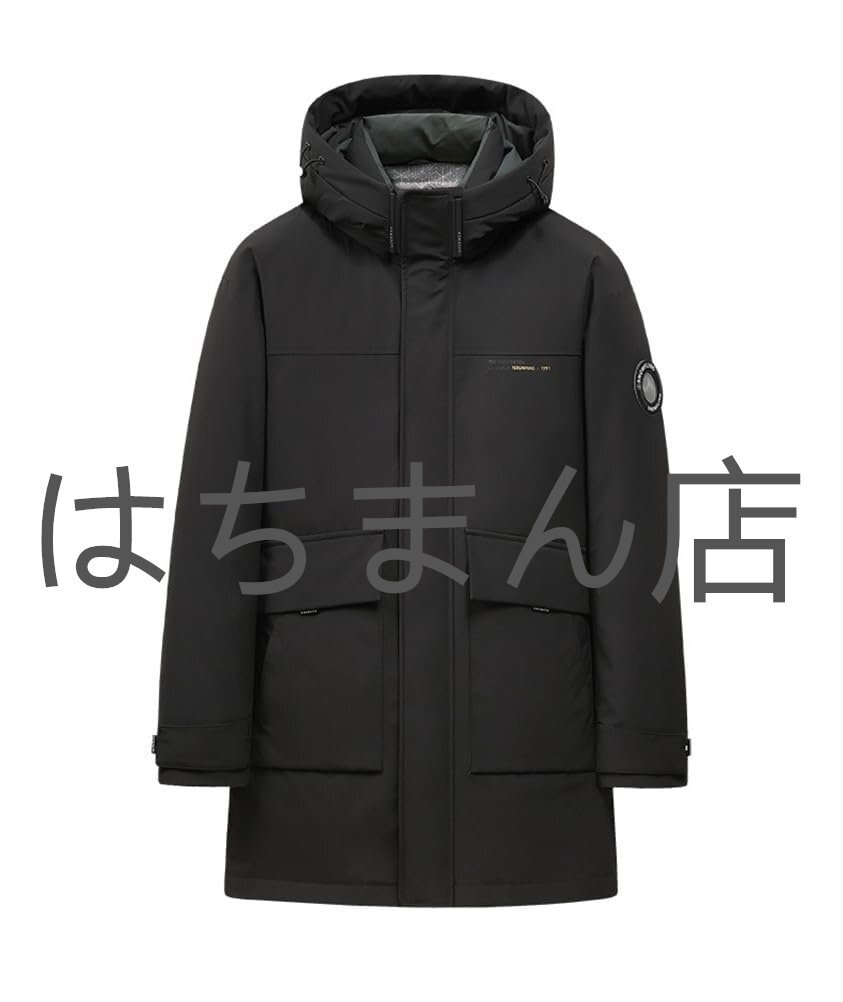 - ダウンコート メンズ ハーフコート フード着脱可能 ビジネス 防寒 秋冬 リアルダウン90%/フェザー10% 羽毛 暖か 軽量 ブラック M-4XL
