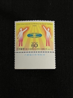 - 切手 単片 【第23回国際社会福祉会議記念】1986 銘板付き