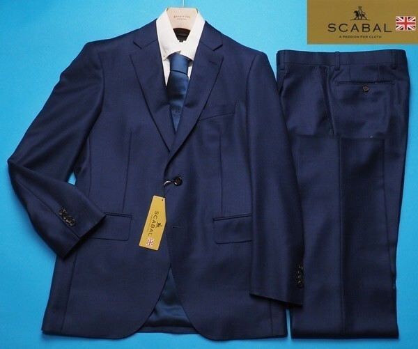 - 新品20.6万円 大手百貨店扱い 日本製 秋冬『Scabal スキャバル 英国製生地』艶感 ウール100% ストライプ スーツA3青(F) 1205661