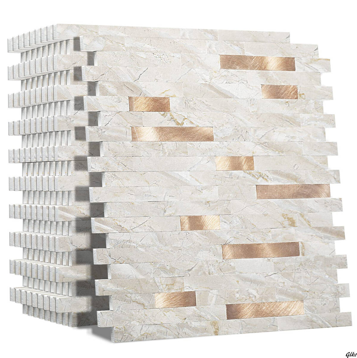 - 【貼って剥がせるので、賃貸物件でも安心して使用可能】 大理石 タイルシール 壁紙 防水 防汚 耐熱 DIY モザイクタイル 石目調