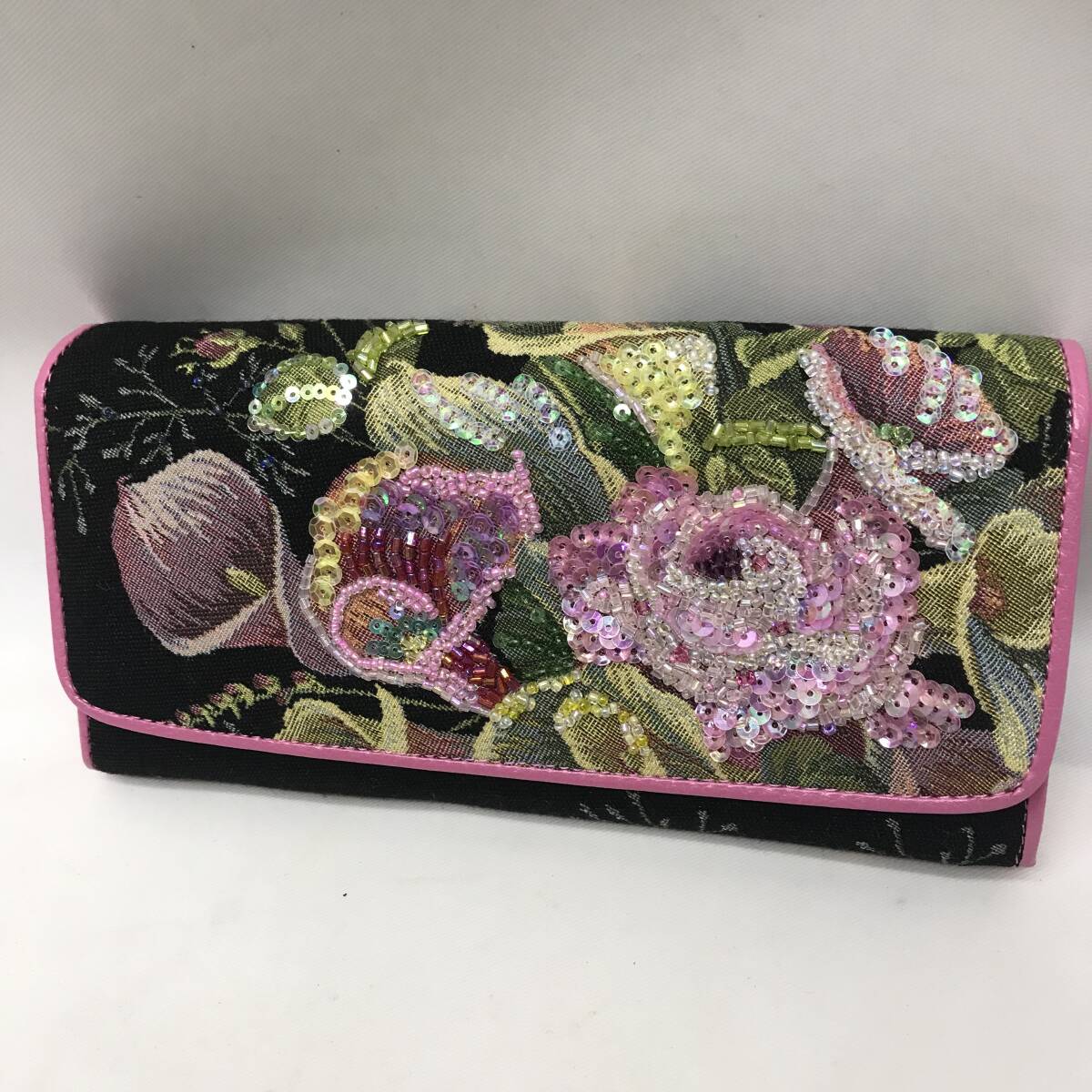 - 【未使用】新品 シンクビー! Think bee 長財布 L字ファスナー 花柄 ピンク ブラック ウォレット