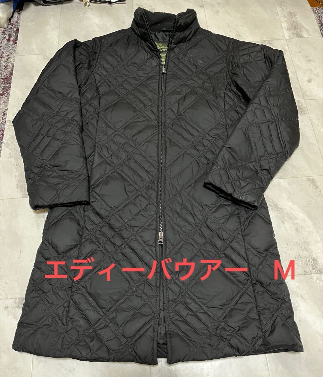 - Eddie Bauer ダウンコート ライトダウン ロングコート Mサイズ ブラック 黒/ダウン85フェザー15