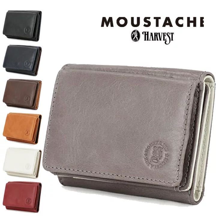 > HARVEST ハーヴェスト MOUSTACHE ムスタッシュ 三つ折り財布 コンパクト財布 ボックスコイン 牛革 イタリアンレザー ブランド KAE 0900