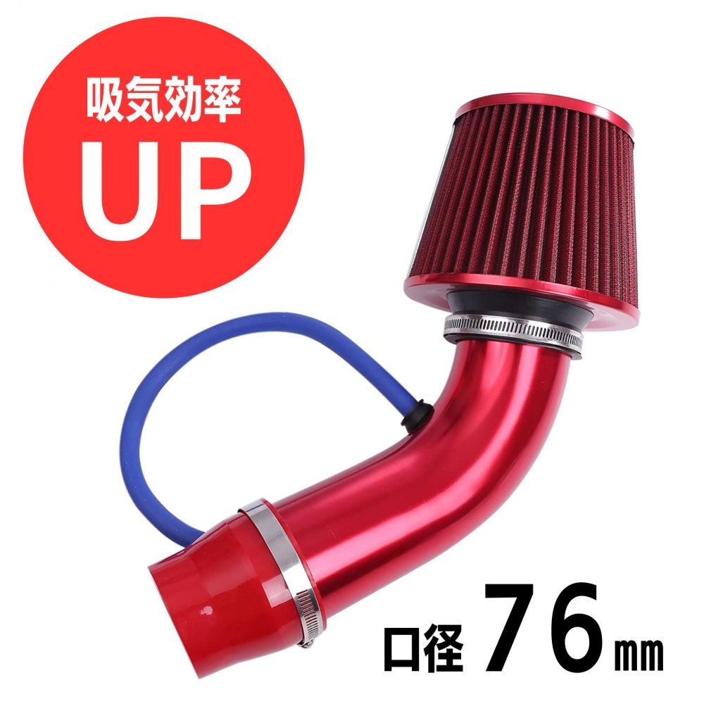 > エアフィルター 赤色 76mm 口径 吸気管 フィルター クリーナー 高流量高冷風 自動車用 アルミ製エアインテークパイプ 汎用
