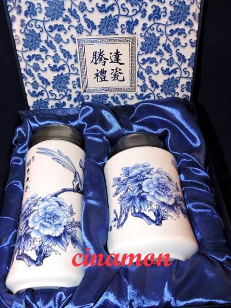 - 青花 国色天香 茶筒 保温杯(牡丹/陶磁器/キャニスター/魔法瓶