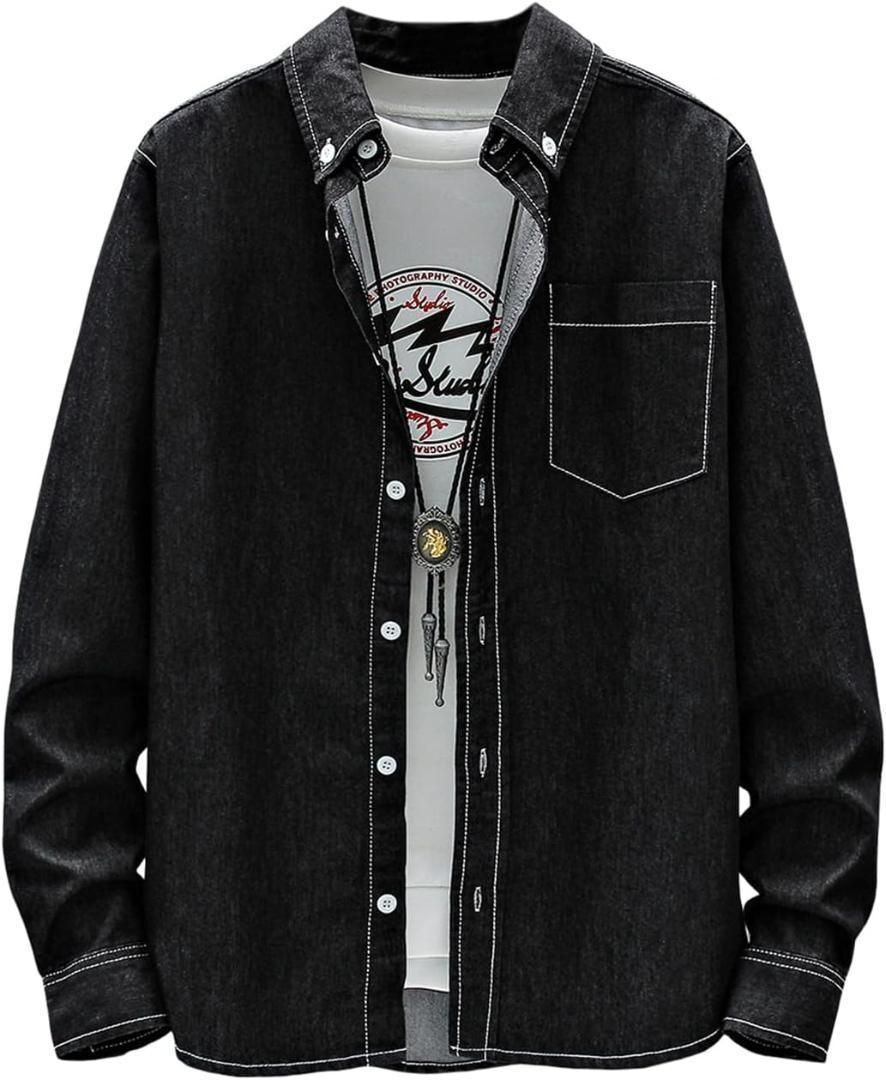 - I198 シャツ メンズ 長袖 春秋 デニム 綿 無地 カジュアル おしゃれ