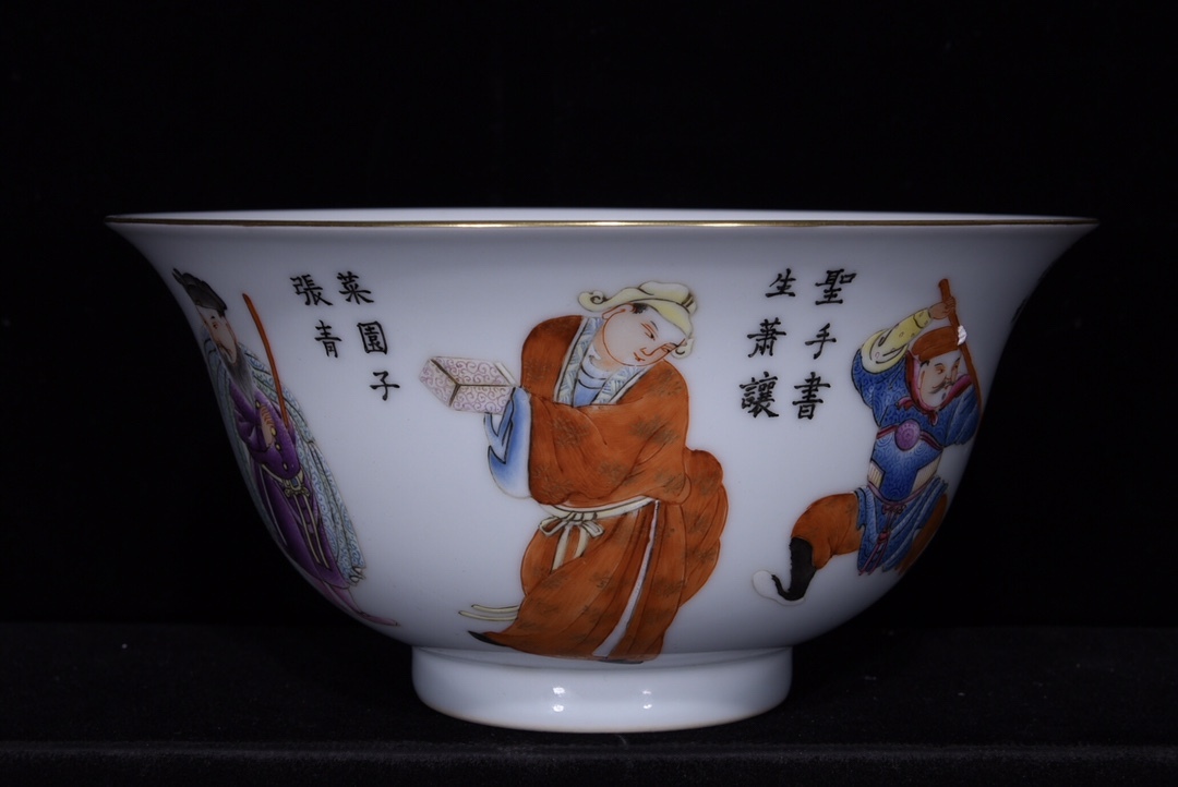 - ◆旧家蔵出◆古美術 中国古玩 大清雍正年製款 粉彩 描金 好漢人物碗 置物 擺件 古賞物 擺件 骨董 時代物 A06